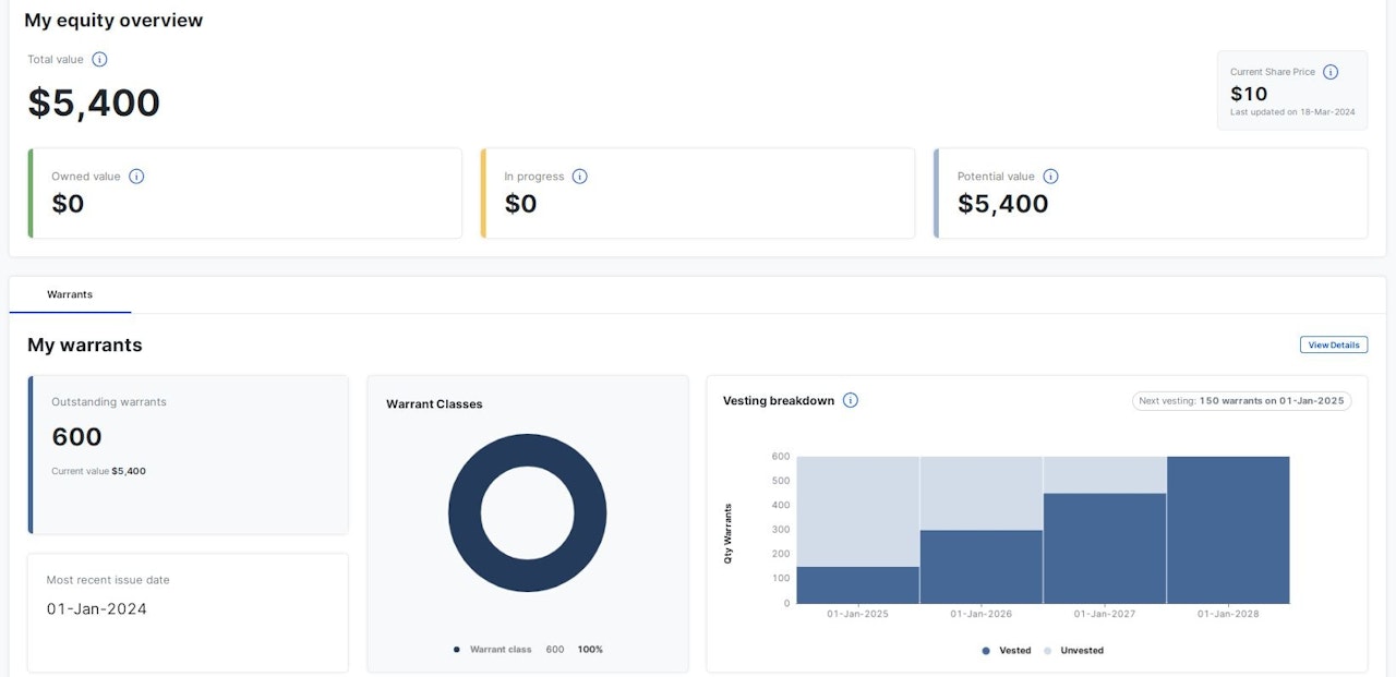 The warrants dashboard provides an overview of your warrant instruments and will be displayed to you if you have an 'active' warrant associated to you.